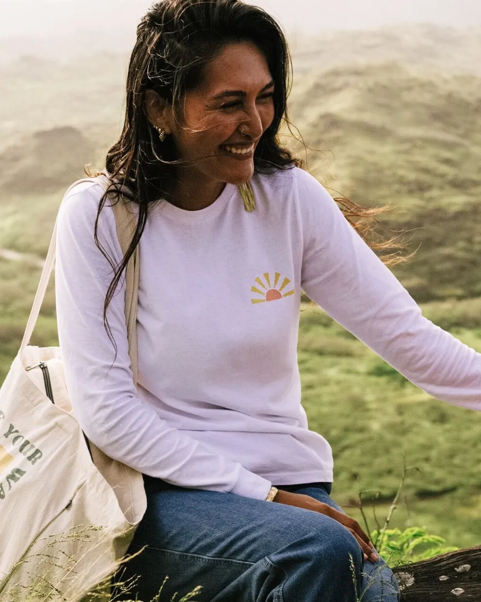 An everyday base layer in super soft Organic and Recycled Cotton blend. Featuring front and back print inspired by those dreamy days spent drifting away to your favourite adventure destination.