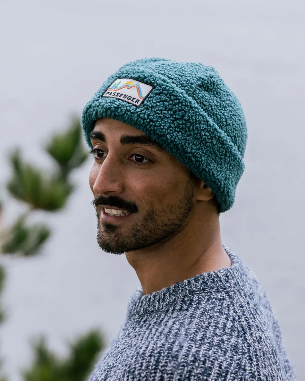 - Sherpa Beanie with a folded hem.
